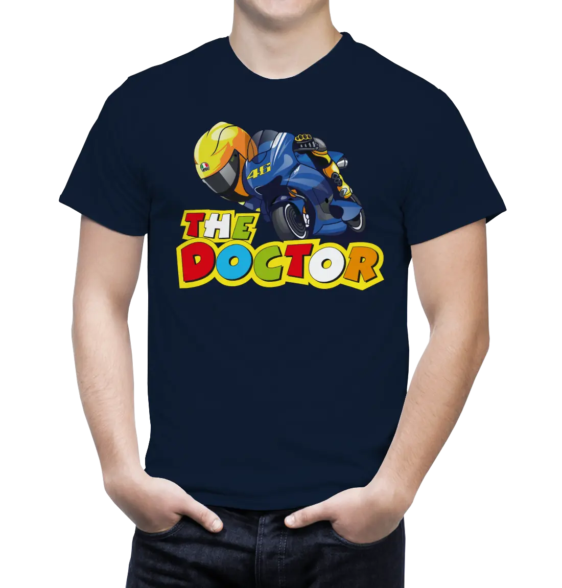 Camiseta Manga Corta unisex Valentino The Doctor, 100% algodón con tejido tubular y zona del cuello de lycra, doble costura en mangas y bajo y refuerzo de hombro a hombro.